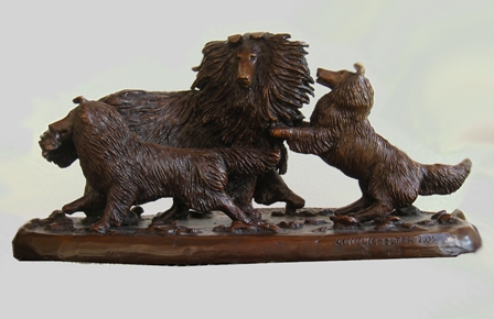 limited edition cast in foundry bronze of a sheltie mother and pups at